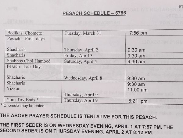 Yom tov ends Thursday Apr 9 - 8:20 pm